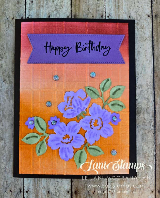 Excellent blended and embossed background and the purple flowers really pop against it. Beautiful card.