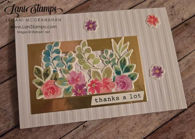 For my card this time I used the new embossed cards and envelopes. It was hard choosing from the stripes and the dots as I love them both. However, for this layout I chose the stripes. I used the frame die from the gallery bundle which is really cool because it cut out 2 frames, a center and an outline. Now I have some pieces to use on other cards.